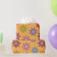 Colorful Smiling Flowers Pattern on Orange Wrapping Paper