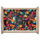 Colorful Sparkly Leaves Pattern - Black Background Serving Tray