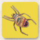 Colorful and bright, this is a hand drawn illustration of a doodle designed spider by artist Sacha Grossel. This bright and hip arachnid is arty and tribal and kind of cute. It is on a mustard yellow background. The background color can be customized to your taste.