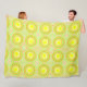 This colorful blanket features a spiral pattern in spring color palette (yellow, orange and green).