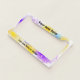 One-of-a-kind License Plate Frame with colorful pretty spirals in purple, blue, yellow on white background. Personalize with your text, or delete text fields to show only image. Designed for Medium and Wide Sized License Plate Frames. Original Graphic Artwork by TamiraZDesigns.