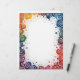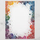 Colorful and exhuberant, this letterhead has splatterpant in yellow, breen, blue, and orange, with white swirls, surrounding a large central space. Perfect for casual correspondance, artsy newsletters, and fun invitations.