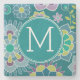 Colorful Spring Floral Pattern Custom Monogram Stone Coaster