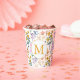Colorful Spring Flower Watercolor Pattern Monogram Paper Cups