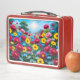 This is a standard metal lunchbox that appears to work just fine. We designed this box ourselves with an uploaded photo and custom text on the front and back. It looks absolutely beautiful except the front of the lunchbox is not centered like it shows in the photo. The print borders don't align with the inset flat part of the box where the preview photo online showed it perfectly centered in there. The back looks nice and centered though.