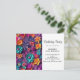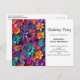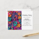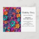 Birthday party postcard invitation with a cool digital 3d style pattern. Bright and colorful flowers with a cool style which looks like paper cutouts.