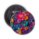 Bottle opener with a cool digital 3d style pattern. Bright and colorful flowers with a cool style which looks like paper cutouts. Fun and fanciful design.