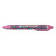 A pen with a cool digital 3d style pattern. Bright and colorful flowers with a cool style which looks like paper cutouts. Fun and fanciful design.