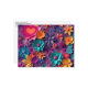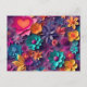 Postcard with a cool digital 3d style pattern. Bright and colorful flowers with a cool style which looks like paper cutouts.