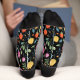 This fun Halloween socks are bright and colorful. The small print is crisp and shows the fun details. The softness of the socks feels nice on my feet and ankles. .