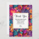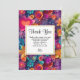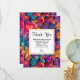 Thank you card with a cool digital 3d style pattern. Bright and colorful flowers with a cool style which looks like paper cutouts.