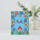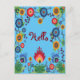 Colorful Spring Flowers Post Card 'Hello' Blue