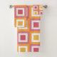 Colorful Square Geometric Pattern Bath Towel Set designed by Nisha Prabhu. This colorful square geometric pattern bath towel set is a stylish and beautiful addition to your bathroom decor. The towel set features a captivating design with multiple squares in various sizes and colors arranged in a geometric pattern. The bold and eye-catching colors, including shades of pink, orange and white, add a playful and modern touch to your bathroom. The geometric pattern adds a contemporary and artistic flair, making your bathroom look visually appealing and exciting. Whether you're looking to update your bathroom decor or add a pop of color to your space, this colorful square geometric pattern bath towel set is the perfect choice. It instantly adds a touch of style and personality to your bathroom, creating a beautiful and inviting atmosphere. With their beautiful colors and geometric pattern, these towels are versatile and suitable for various bathroom styles and themes. They work well in both modern and eclectic bathrooms, adding a touch of visual interest and sophistication. Elevate your bathroom decor with this colorful square geometric pattern bath towel set. It is sure to impress your guests and make your bathroom a stylish and comfortable retreat. The modern design and beautiful colors will make your bathroom stand out and create a cheerful ambiance.