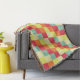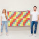 A pattern made up of squares of five different colors which have been arranged in 4x4 tiles. However the 4x4 tiles on the right are reversed and inverted creating a more interesting overall design. This design is created from a full sized vector graphic specifically for this type of blanket. The color squares at the edges are therefore fully extended into the bleed area ensuring there can be no unwanted pattern edges in the final product.