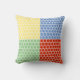 Modern colorful yellow blue red green squares and white circles Throw Pillow. Four colors representing the four elements of nature! The white circles is the fifth element or spirit pervading all the four elements of nature.
