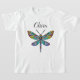 Personalized shirt with dragonfly with colorful stained glass wings.