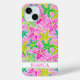 Customize this colorful watercolor starfish in greens and pinks iPhone 15 case with your your name in a trendy modern CAP font in pink on white. It's so modern and trendy!