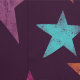 Shine bright with this fun patterned wallpaper. It features a fun pattern of painted style star graphics with a distressed style in bright blue, orange, yellow, magenta pink and lilac purple against a dark purple background.