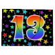 This exciting, fun, and vibrant gift bag design features a colorful stars pattern, along with the number "13" having a multicolored rainbow inspired spectrum gradient pattern, on a black colored background. A gift bag like this might be a fun way to wrap presents or gifts being given for somebody’s thirteenth birthday, or perhaps for a couple’s thirteenth wedding anniversary, or some other 13th event. [~Z0000347]