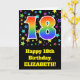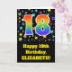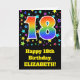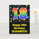 The front of this exciting, fun, and vibrant birthday greeting card design features a colorful star field inspired pattern, along with the number "18" having a multicolored rainbow spectrum like gradient pattern, on a black colored background. The front also features a birthday greeting message, including a customized recipient name. The inside features a custom birthday greeting message, or could perhaps be cleared and left blank if a message is to be written by hand instead. A personalized birthday card like this might be a fun way to send birthday wishes to somebody who is celebrating their eighteenth birthday. [~Z0000348]