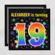 Colorful Stars + Rainbow Pattern "19" Birthday # Invitation