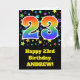 The front of this exciting, fun, and vibrant birthday greeting card design features many colorful star shapes, along with the number "23" featuring a multicolored rainbow inspired spectrum gradient pattern, on a black colored background. The front also features a birthday greeting message, including a customized recipient name. The inside features a custom birthday greeting message, or could perhaps be cleared and left blank if a message is to be written by hand instead. A custom birthday card like this might be a fun way to send birthday wishes to somebody who is celebrating their twenty third birthday. [~Z0000348]