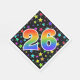 This exciting, fun, and vibrant paper napkin design features a pattern of colorful star shapes, along with the number "26" having a multicolored rainbow inspired spectrum gradient pattern, on a black colored background. Paper napkins like this might be fun to use at a party being held in honor of somebody’s twenty sixth birthday, or perhaps a couple’s twenty sixth wedding anniversary, or some other 26th event. [~Z0000346]