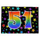 This exciting, fun, and vibrant gift bag design features numerous colorful star shapes, along with the number "51" featuring a multicolored rainbow inspired spectrum gradient pattern, on a black colored background. A gift bag like this might be a fun, happy way of wrapping gifts or presents being given for somebody’s fifty first birthday, or perhaps for a couple’s fifty first wedding anniversary, or some other 51st event. [~Z0000347]