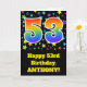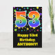 The front of this exciting, fun, and vibrant birthday greeting card design features a colorful star field inspired pattern, along with the number "53" having a multicolored rainbow spectrum like gradient pattern, on a black colored background. The front also features a birthday greeting message, including a customizable recipient name. The inside features a custom birthday greeting message, or could perhaps be cleared and left blank if a message is to be written by hand instead. A personalized birthday card like this might be a fun way to send birthday wishes to somebody who is celebrating their fifty-third birthday. [~Z0000348]