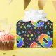 This exciting, fun, and vibrant wrapping paper design features many colorful star shapes, along with the number "60" featuring a multicolored rainbow inspired spectrum gradient pattern, on a black colored background. Wrapping paper like this might be a fun, happy way of wrapping gifts or presents being given for somebody’s sixtieth birthday, or perhaps for a couple’s sixtieth wedding anniversary, or some other 60th event. [~Z0000345]