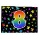 This exciting, fun, and vibrant gift bag design features numerous colorful star shapes, along with the number "8" featuring a multicolored rainbow inspired spectrum gradient pattern, on a black colored background. A gift bag like this could perhaps be a fun and happy way of wrapping gifts or presents being given for somebody’s eighth birthday, or perhaps for a couple’s eighth wedding anniversary, or some other 8th event. [~Z0000347]