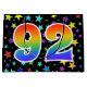 This exciting, fun, and vibrant gift bag design features a colorful star field inspired pattern, along with the number "92" having a multicolored rainbow spectrum like gradient pattern, on a black colored background. A gift bag like this could perhaps be a fun way to wrap presents or gifts being given for somebody’s ninety second birthday, or perhaps for a couple’s ninety second wedding anniversary, or some other 92nd event. [~Z0000347]