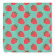 A colorful vibrant strawberry seamless pattern. The fruit is red pink and the background is a mint blue