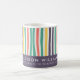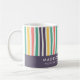 Brighten up your morning with this colorful striped mug. Featuring playful wavy stripes in green, red, yellow, purple, and white, this vibrant design adds a cheerful touch to your coffee or tea time. The bottom section allows for personalization — add your name, profession, or an inspiring phrase to make it truly unique. Perfect as a thoughtful gift for colleagues, friends, teachers, or just for yourself.