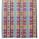 colorful stripes and triangles in turquoise blue, coral pink, mint green, mustard yellow, orange-red, lavender purple, black, white, gray, and brown