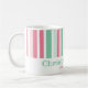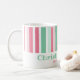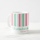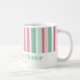 Pink and green are such yummy colors. They are a great combination for Christmas. These lively retro stripes are a lot of fun on this holiday coffee mug. Our minty text "Christmas Cheer" is editable. Be sure to change the example names and date to be the ones you want.