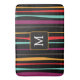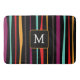 elegant black purple and yellow stripes custom monogram bath mat ,modern colorful stripes monogram bath mat .