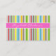 Colorful stripes pattern pink band feminine business cards, featuring a striped pattern with colorful stripes in green, blue, yellow, red, white and your name on a hot pink band. A fun, modern, contemporary, eye catching hip, abstract design with a touch of retro for personal or professional use.