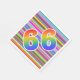 This vibrant, fun, and eye-catching paper napkin design features a colorful pattern of stripes, along with the number "66" featuring a multicolored rainbow like gradient pattern. Paper napkins like these might be fun to use at a celebration being held to commemorate somebody’s sixty sixth birthday, or perhaps a couple’s sixty sixth wedding anniversary, or some other 66th event. [~Z0000352]