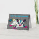 Create a personalized card for birthdays or any occasion with this folded greeting card that's ready to be customized with your own message on the front and the inside. This card features a modern style illustration of a sugar glider in bright colors: black, white, electric blue, magenta and yellow. The graphic is set against a distressed style gray background.