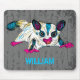 This mouse pad is ready to be personalized with your name and features a modern style illustration of a sugar glider in bright colors: black, white, electric blue, magenta and yellow. The graphic is set against a distressed style gray background. Add your name or other text below in bright blue lettering.
