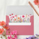 Complete your summer wedding stationery suite with a colorful boho wildflower envelope. Bright pastel flowers peek from under the envelope flap. providing the perfect simple, modern touch for couples mailing out floral themed wedding invitations. Perfect for cottage garden themes or romantic botanical aesthetics.