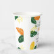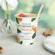 The Colorful Summer Neighborhood Block Party Paper Cups are the perfect addition to any festive outdoor event. These cups are adorned with a vibrant pattern of orange and green leaves, highlighted by bright yellow leaves, all set against a fresh white background. This colorful design radiates summer vibes, making them an ideal choice for serving drinks at neighborhood gatherings or block parties.
