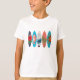 A colorful surfboard design featuring different types surfboard art. Vintage illustrations of tropical fish, beach, hibiscus flowers and palm trees create an eclectic mix of colorful surfboards. Ideal surfboard design for anyone who loves surfing, the beach, colorful beach themed gifts and décor.