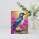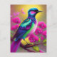 A colorful bird perched on a branch loaded with pretty pink flowers AI generated fantasy art