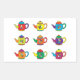 COLORFUL TEAPOTS RECTANGULAR STICKER