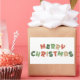 Modern simple colorful seasonal design. Merry Christmas and Happy new Year sticker.