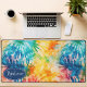 Inject a burst of creative energy into your workspace with this vibrant tie-dye inspired desk mat. The design features a high-quality, psychedelic fusion of brilliant turquoise, sunny yellow, and fiery orange watercolor blooms that create a dynamic and joyful atmosphere. A deep navy oval badge in the lower corner provides a professional space for a personalized name in elegant white script, making this a unique and stylish addition to your office. This large-format mat offers a durable, smooth surface for your mouse and keyboard while protecting your desk from daily wear. Perfect for those who love bold, boho-chic aesthetics, this personalized accessory brings a high-energy, artistic flair to your productive day.