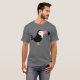 My 11 yo wore adult XL (5’7” 165#). The 8yo is small framed. She wore adult small and tied it in the back. Grandma wore adult large with long sleeve shirt underneath. Tall girl adult medium. Dark haired male adult large. Good quality dark Heather gray, Gildan brand shirt. -it was next up from basic choice and cost about $20 per shirt. Not too thick or thin. Washed and dried well, no major shrinkage. Not see-through. Can wear a bra under it fine. Screen print is just as shown and well done, front and back.