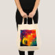 The printing came out very well, better than I had anticipated. The natural color fabric is sturdy with strong seams and comfortable handles. This tote fits easily over my shoulder. As it is filled, the bottom flattens out--very cool! I would buy this product again. This grocery tote holds a lot of groceries! The image quality was very good. The colors were a little darker than I had expected. The darkness may have been due to printing on a natural color fabric rather than on white. The cat design is attractively centered on the tote. The spirit of the design is very lively, just as it appears on the Zazzle website.
